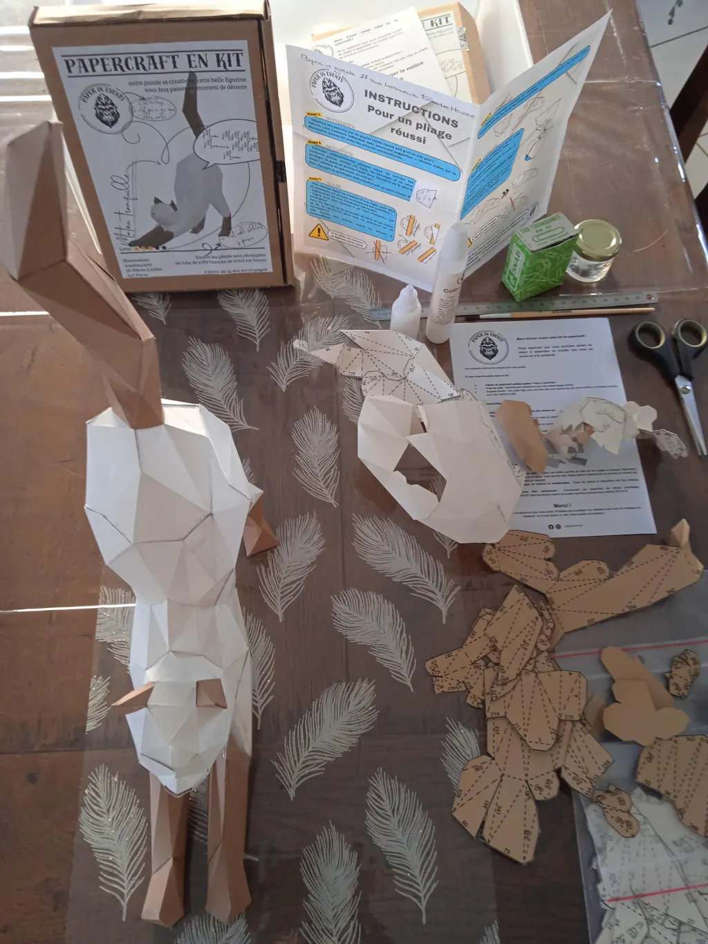 Apportez une touche de douceur et de déco moderne dans votre intérieur avec ce magnifique chat en papercraft et origami 🐾 ! Grâce à ses 36 pièces à coller déjà préparées, ce modèle est un DIY relaxant et accessible, parfait pour les amoureux des animaux et du design papier. Ce chat 3D origami devient une véritable sculpture à poser : élégante, minimaliste et inspirée du style low-poly. Une décoration tendance qui attire immédiatement l’attention ✨.